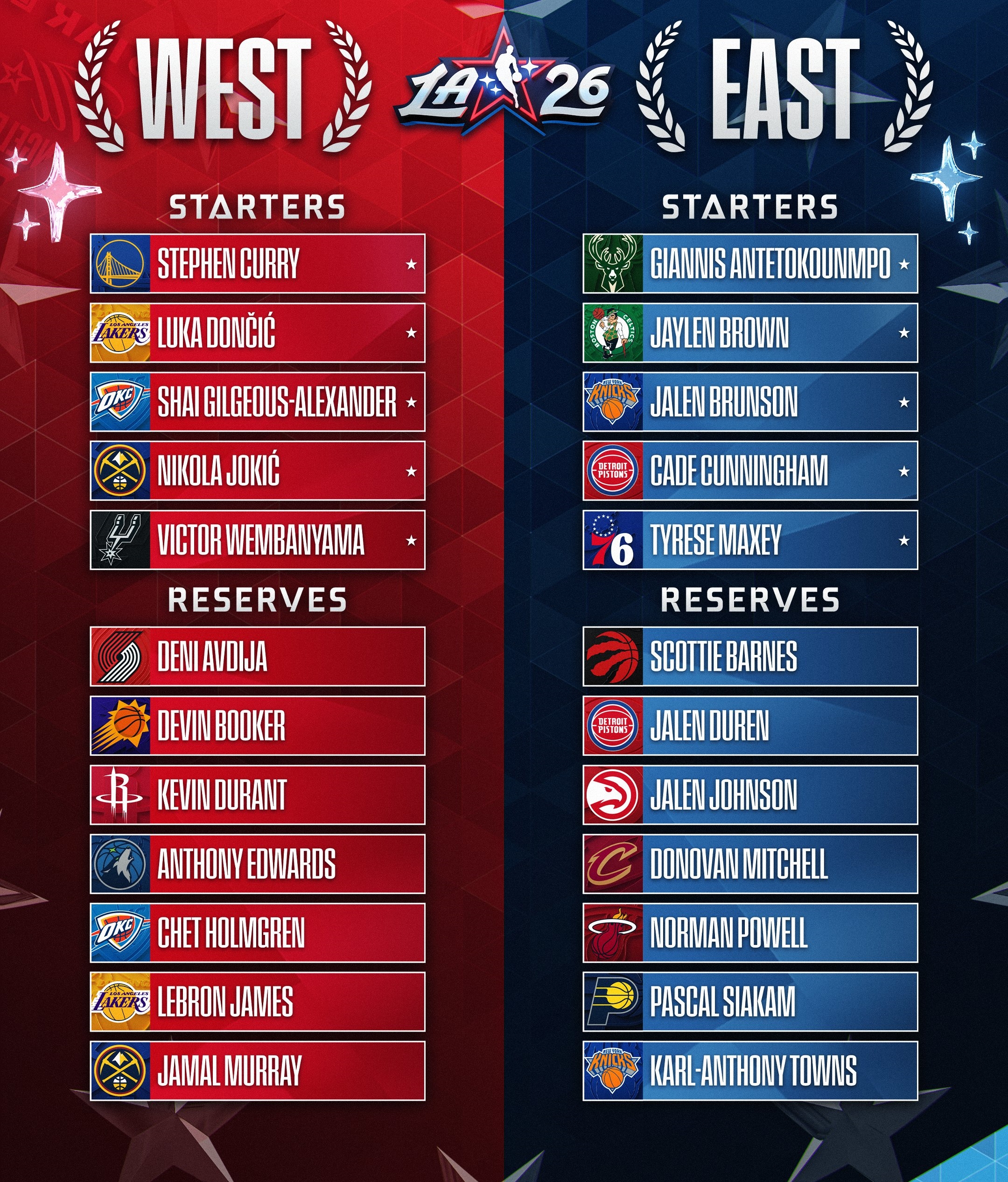 2026 NBA All-Star maçına ilk beş başlayacak olan oyuncuların ardından yedek isimler de resmen açıklandı ve kadrolar belli oldu.