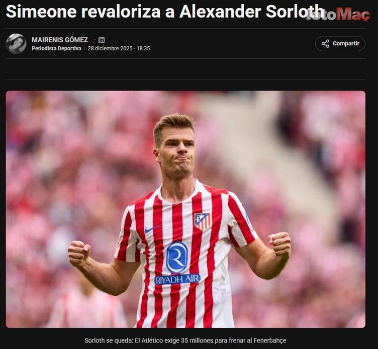 Haberde Atletico Madrid’in sadece 35 milyon Euro’luk bir teklif gelmesi halinde transferi değerlendirmeye alacağı aktarıldı.