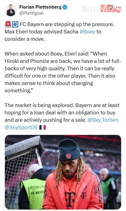 2024 Kış transfer döneminde 30 milyon euro’luk bonservis bedeliyle Galatasaray’dan ayrılarak Bayern Münih’e transfer olan Sacha Boey, sahada beklentileri karşılayamaması sebebiyle kulübüyle problem yaşıyor. Transferde adı eski kulübü Galatasaray ile anılan ve Bayern Münih’in bonservisiyle birlikte göndermek için satış listesine koyduğu Fransız oyuncu hakkında yeni bir gelişme yaşandı.
