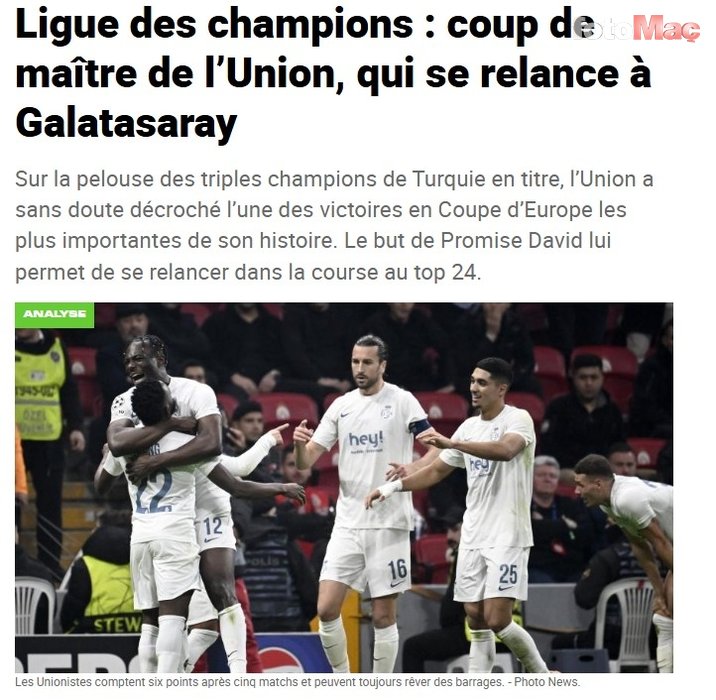 RTL.BE: Başardılar: Union, Şampiyonlar Ligi’nde Galatasaray’a karşı büyük bir zafer kazandı