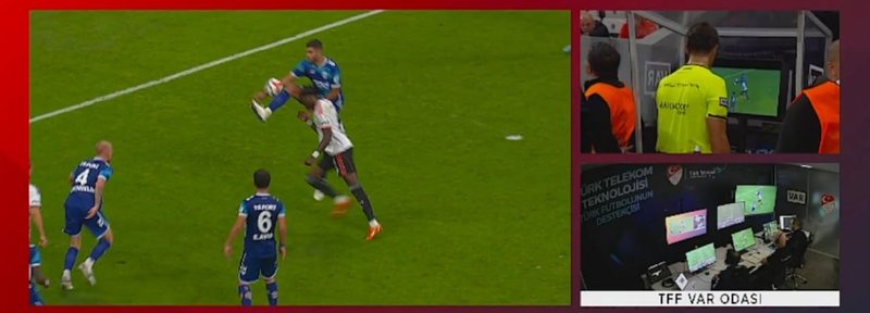 Pozisyonun ardından Beşiktaşlı oyuncular yoğun şekilde itiraz ederken hakem Atilla Karaoğlan VAR’dan gelen uyarı üzerine monitöre giderek pozisyonu detaylı şekilde inceledi.