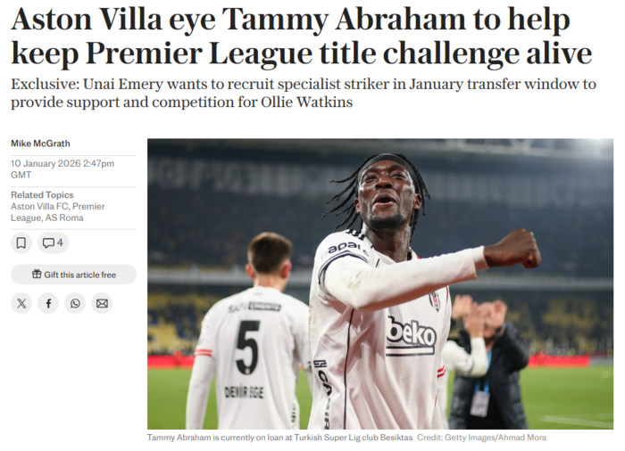 Beşiktaş’ın sezon başında AS Roma’dan kadrosuna kattığı Tammy Abraham, Avrupa kulüplerinin dikkatini çekmeye devam ediyor. İngiliz basınından The Telegraph’ta yer alan habere göre Premier League ekibi Aston Villa, sezonun ikinci yarısı öncesinde yıldız golcü için harekete geçmeyi değerlendiriyor. Ada ekibinin, bu transfer ile hücum hattında Ollie Watkins’e destek ve rekabet yaratmayı amaçladığı ifade ediliyor.