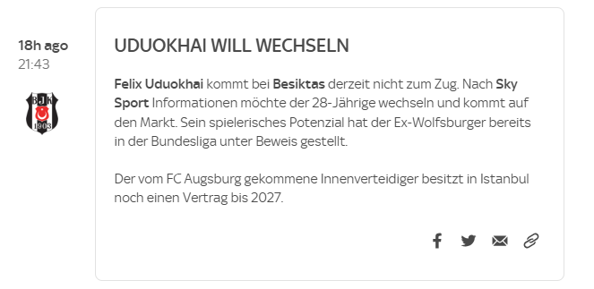 Sky Sport DE’de yer alan habere göre Beşiktaş’a geçen sezon yaz transfer döneminde katılan, bu sene ise fazla forma şansı bulamayan Felix Uduokhai’nin siyah-beyazlılardan ayrılmak istediği öğrenildi.