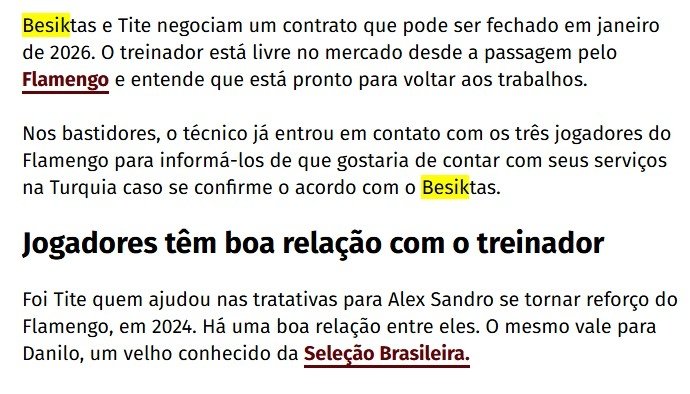 Tite’nin, söz konusu oyuncularla doğrudan iletişime geçerek onları Beşiktaş’a götürme ihtimalini yokladığı ifade edildi. Ayrıca, Flamengo’da bir oyuncuya yakın bir kaynağın, Tite’nin Beşiktaş’a gitmesi durumunda Everton Cebolinha, Alex Sandro ve Danilo ile birlikte çalışmak istediğini söylediğini doğruladığı ifade edildi.