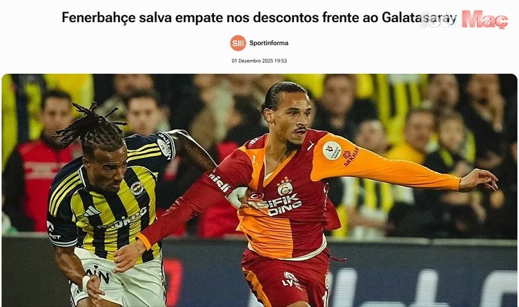 SAPO: Fenerbahçe, Galatasaray karşısında beraberliği uzatmalarda kurtardı