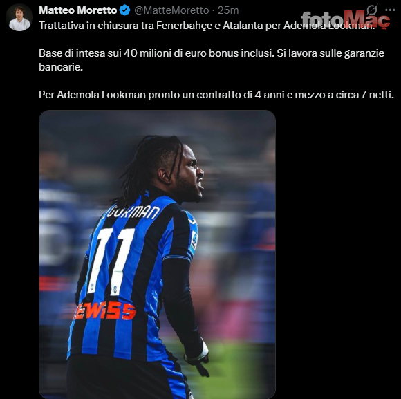 Bir diğer İtalyan gazeteci Matteo Moretto ise sarı-lacivertlilerin bu transfer için bonuslar dahil 40 milyon Euro bonservis bedeli ödeyeceğini yazdı.