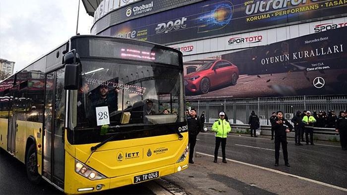 Tüpraş Stadyumu’nda toplanan yaklaşık 2 bin taraftar, bilet kontrolü ve üst aramasının ardından 30 otobüsle Kadıköy’e hareket etti.