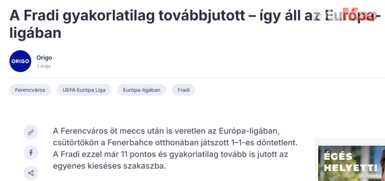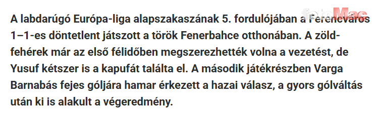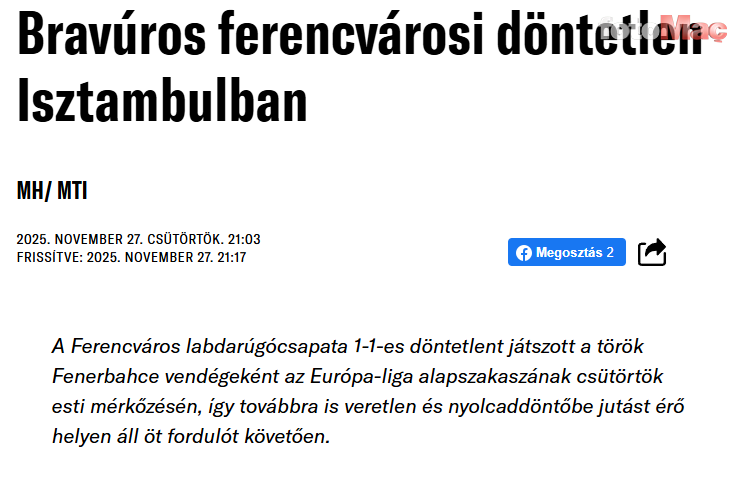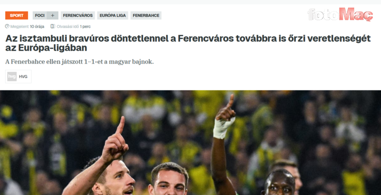 HVG, “Ferencvaros, İstanbul’daki iyi sonuçla Avrupa Ligi’ndeki yenilmezlik serisini sürdürdü ve beş hafta sonunda üst tur şansını artırdı” ifadelerine yer verdi.