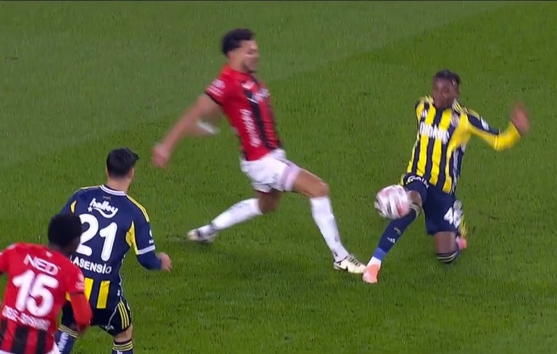 Sarı lacivertli ekibin 8. dakikada gelişen atağında Mert Müldür’ün ceza sahasına kestiği topu Nene kontrol etti, rakibinin müdahalesi sonrası yerde kaldı.