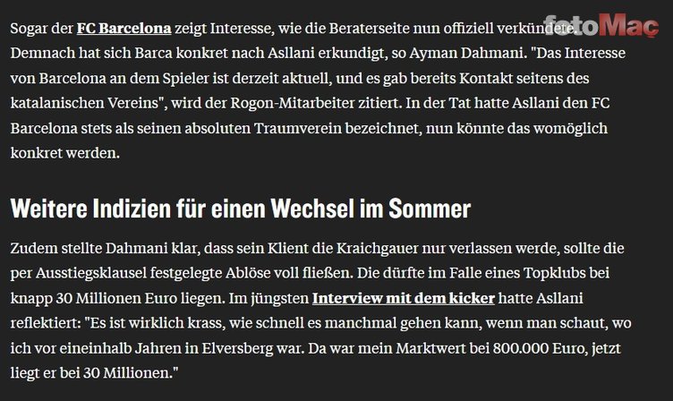 Kicker’de yer alan habere göre, Kosovalı golcüye dünya devi Barcelona’nın ilgisi olduğu açıklandı.