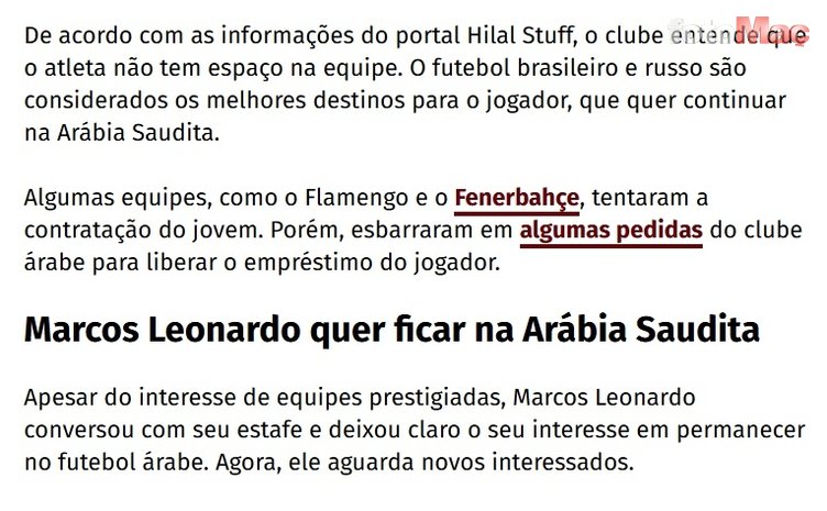Ancak transferde belirleyici nokta oyuncunun tercihi oldu. Marcos Leonardo’nun, menajer ekibiyle yaptığı görüşmelerin ardından kariyerine Suudi Arabistan’da devam etmek istediğini net şekilde ilettiği aktarıldı.