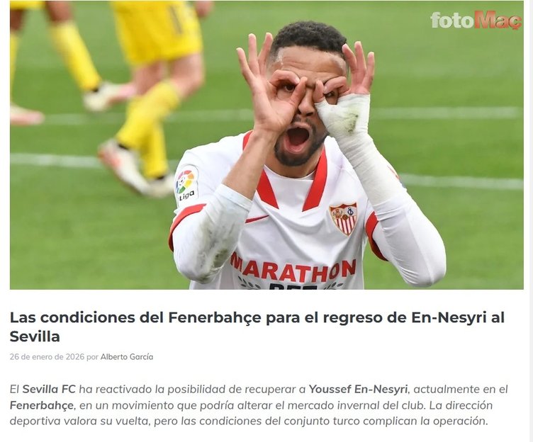 OrgulloBiri kaynaklı haberde sarı-lacivertliler, Youssef En-Nesyri için 20 milyon Euro satın alma opsiyonu içeren sezon sonuna kadar kiralama teklifinde bulundu.