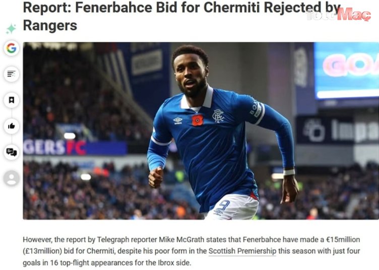 Fenerbahçe’nin 21 yaşındaki ve 1.92 boyundaki oyuncu için Rangers’a 15 milyon euro teklif ettiği de haberde yer aldı.
