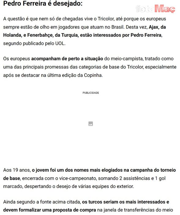 UOL’un haberine göre, Fenerbahçe, Sao Paulo forması giyen Pedro Ferreira ile yakından ilgileniyor.