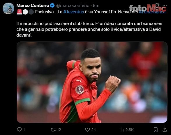 Radio Sportiva’da yorumculuk yapan İtalyan muhabir Marco Conterio, Juve’nin ara transferde En Nesyri’yi renklerine katmak istediğini yazdı.