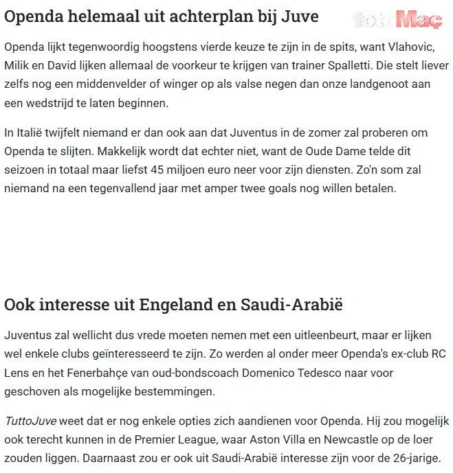Bu sezon Juventus formasıyla 33 maçta görev alan Openda, 2 gollük performans sergiledi. 26 yaşındaki oyuncunun piyasa değeri 40 milyon euro olarak gösteriliyor.