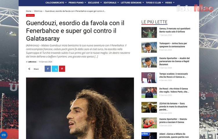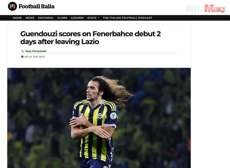Guendouzi daha valizini boşaltmadan golünü attı. Galatasaray ile Süper Kupa finalinde oynadıkları derbide attığı güzel golle Türkiye’yi aydınlattı. (La Gazzetta dello Sport)