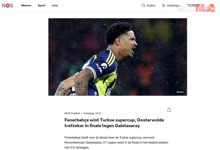 Fenerbahçe, Oosterwolde’nin ağları havalandırdığı Süper Kupa finalinde Galatasaray’ı 2-0 devirdi ve şampiyon oldu. (nos.nl)