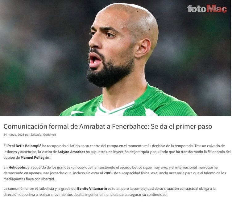 Amrabat’ın kariyerini Real Betis’te sürdürmek için kendisine gelen diğer teklifleri reddettiği kaydedildi.