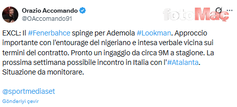 Accomando’nun haberinde son olarak Fenerbahçe’nin önümüzdeki hafta Atalanta ile İtalya’da olası bir görüşme planladığı belirtildi.