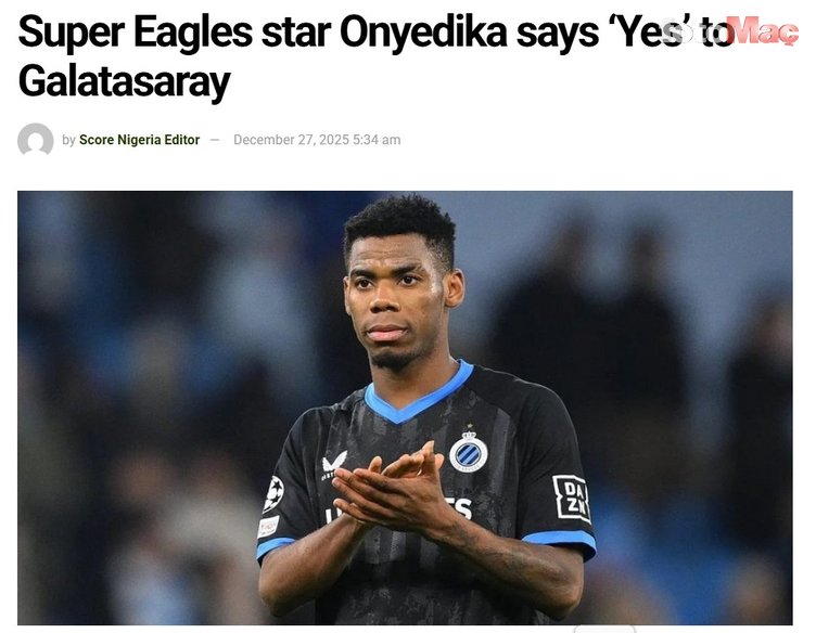 Score Nigeria’da yer alan habere göre; Onyedika, Galatasaray’ın teklifini kabul etti.
