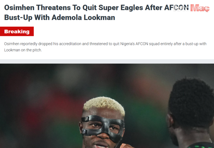 Maçın ardından Nijerya basınından Arise News, gündeme bomba gibi düşen bir iddia ortaya attı. Habere göre Osimhen, milli takım akreditasyonunun iptal edilmesini isteyerek Türkiye’ye dönmekle tehdit etti. Yıldız oyuncunun karşılaşma sonrası oldukça sinirli olduğu, takım arkadaşlarını ve teknik heyeti beklemeden tesislerden ayrıldığı öne sürüldü.