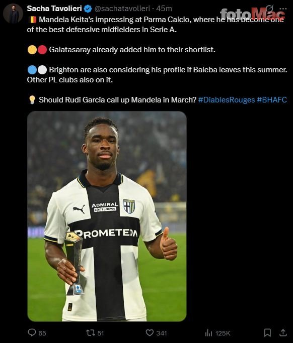 Tavolieri, Cimbom’un Parma’da forma giyen Belçikalı orta saha oyuncusu Mandela Keita’yı gündemine aldığını belirtti.