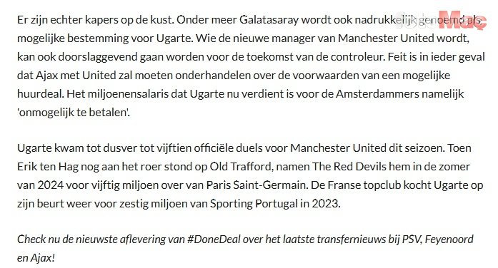 Ugarte’nin de önümüzdeki yaz yapılacak Dünya Kupası’nı da düşünerek Amsterdam’a geçici bir transfer fikrine sıcak baktığı söylendi.