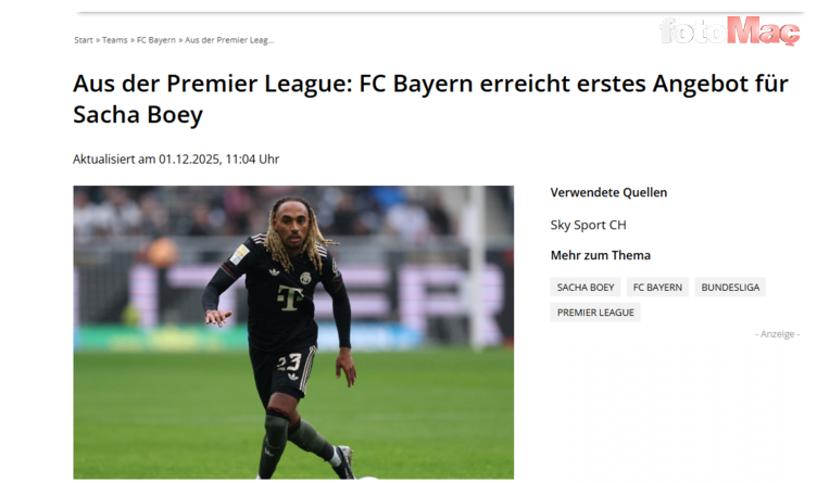 Bayern’in, Ocak ayında Sacha Boey’i satışa çıkaracağı yönünde karar aldığı ve oyuncuya talip çıktığı belirtildi.
