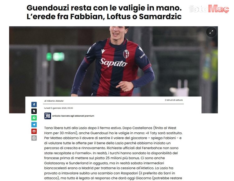 Il Messaggero’da yer alan habere göre; Galatasaray da Matteo Guendouzi ile ilgileniyor.