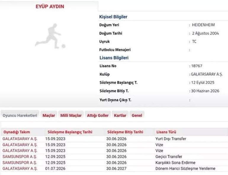 Galatasaray’ın genç futbolcusu Eyüp Aydın sezon başında tecrübesi kazanması adına Samsunspor’a kiralanmıştı. Aydın’ın Samsunspor kariyeri kısa sürdü.