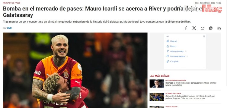 Diario UNO’da yer alan habere göre; Icardi, River Plate yönetimiyle temas kurdu.