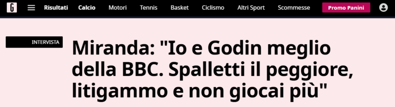 Kariyerinde Inter ile Atletico Madrid gibi takımlar olan ve 2023 yazında kariyerini sonlandıran Brezilyalı eski futbolcu Joao Miranda, İtalyan basınından La Gazzetta dello Sport’a konuştu. Miranda, Galatasaraylı Mauro Icardi hakkında da dikkat çeken ifadelere yer verdi. 41 yaşındaki isim Inter’de Luciano Spaletti ile çalıştığı dönem hakkında konuşurken kendisine Spaletti’nin, Wanda Nara nedeniyle Icardi’den kaptanlık pazubandını aldığının hatırlatılması üzerine,