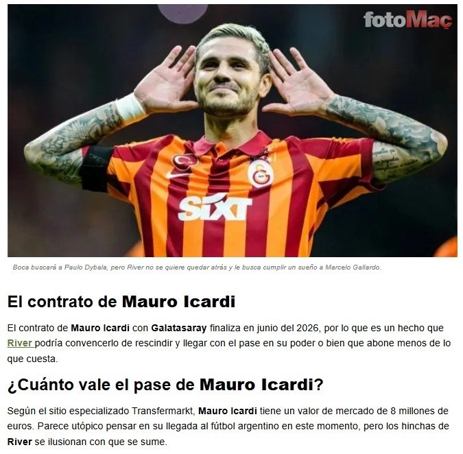El Crack Deportivo’da yer alan habere göre; River Plate, Mauro Icardi’yi transfer etmek istiyor.