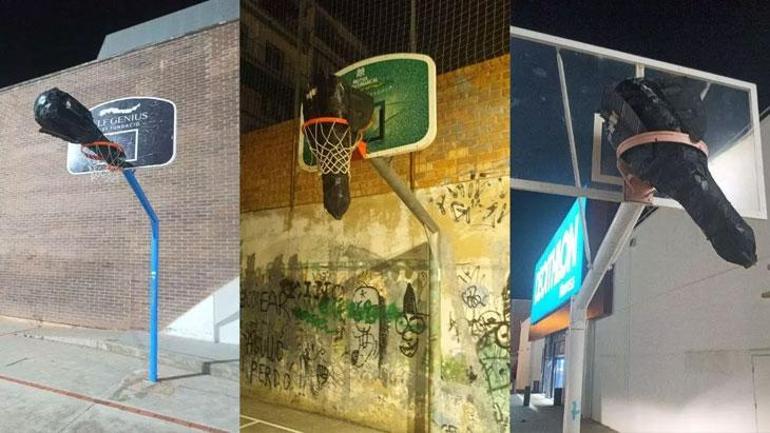 Manresa taraftarları şehirdeki bazı potalara sembolik füzeler yerleştirdi.