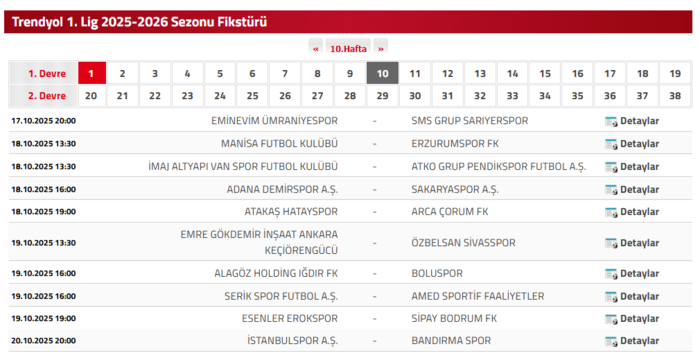 Milli aranın bitişiyle Trendyol Süper Lig, 18 Ekim 2025 Cumartesi günü kaldığı yerden devam edecek. TFF, fikstürü Avrupa kupaları ve devre arası tatilini (19-22 Aralık 2025) göz önünde bulundurarak planlarken 8 Ağustos 2025’te başlayan Süper Lig, 2025-2026 sezonunda 17 Mayıs 2026’ya kadar uzanacak. Sezonun ikinci milli arası 17 Ekim Cuma günü sona ererken 9. hafta maçları fikstüründe Konyaspor-Kocaelispor, 18 Ekim Cuımartesi günü açılışı yapacak.