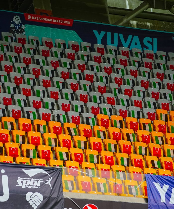 Trendyol Süper Lig’in 9. haftasında oynanacak olan RAMS Başakşehir-Galatasaray maçında tribünde Filistin bayrakları ve pankartları yer alacak. Hazırlanan koreografi ile Başakşehir Fatih Terim Stadyumu’nda tek bir ağızdan soykırıma tepki gösterilecek.