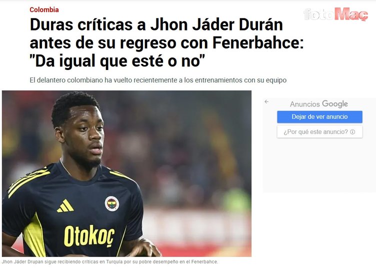 Fenerbahçe’de uzun süreli sakatlığı nedeniyle bir türlü form tutturamayan Jhon Duran, İspanyol Marca gazetesinde manşete taşındı.