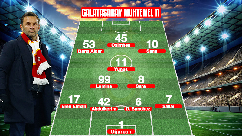 Galatasaray: Uğurcan, Sallai, Davinson, Abdülkerim, Eren, Sara, Lemina, Sane, Yunus, Barış Osimhen.