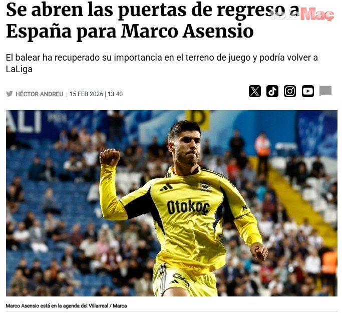 Sarı-lacivertlilerin ise Marco Asensio’nun ayrılığına kolay izin vermeyeceği ve 20 milyon Euro civarındaki teklifleri değerlendirmeye alacağı kaydedildi.