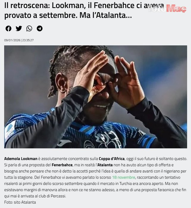 Çizme basını, Lookman transferine ilişkin yeni bir iddia ortaya attı.