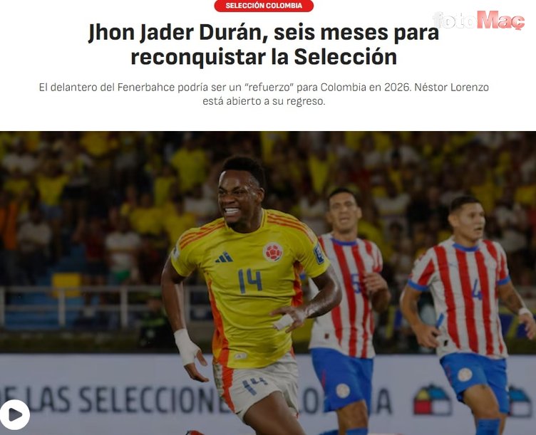 AS’ın Kolombiya edisyonunda yer alan haberde; Duran’ın Dünya Kupası için Kolombiya’nın vazgeçilmez isimlerinden biri olduğu ve kısa süre içinde milli takıma döneceği belirtildi.