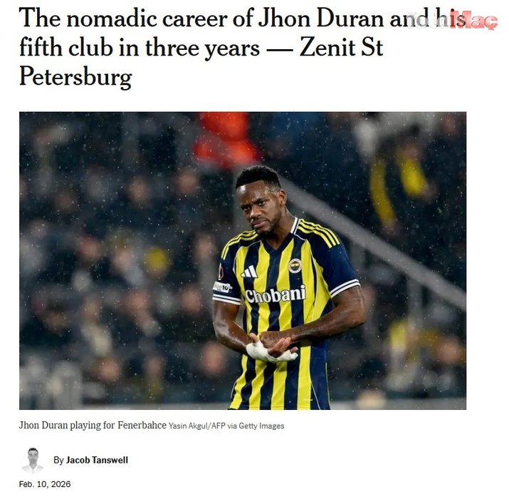 The Athletic, Fenerbahçe’den ayrılarak Zenit’e transfer olan Jhon Duran’ın kariyer yolculuğuna da değinerek Kolombiyalı oyuncunun son 3 yılda 5. takımına transfer olduğunu belirtti. Duran’ın 15 ay önce Aston Villa ile 2030 yılına kadar sözleşme imzaladığı ve 22 yaşındaki santrforun durumunun giderek tuhaf bir hal almaya başladığı kaydedildi.