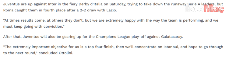Yaptığı açıklamada, “Bizim için ligi ilk dörtte bitirmek son derece önemli. Şampiyonlar Ligi’nde de İstanbul’da Galatasaray ile oynayacağımız maça odaklanacağız ve üst tura geçmeye çalışacağız.” şeklinde konuştu.
