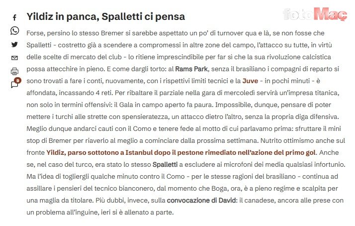 Tuttosport’ta yer alan habere göre; İtalyan çalıştırıcı, Juventus’un cumartesi günü Como ile oynayacağı maçta Kenan Yıldız’ı yedeğe çekme kararı aldı.