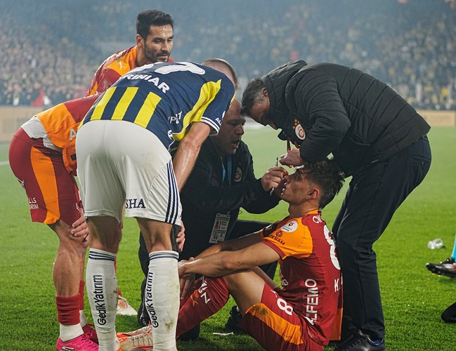 Maçın sonuna en az 6 dakika eklendi. Uzatma dakikalarında Kazımcan sakatlandı. Yunus Akgün giren isim oldu .