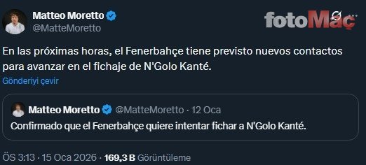 İtalyan gazeteci Matteo Moretto, Fenerbahçe’nin önümüzdeki saatlerde N’Golo Kante’nin transferini hızlandırmak için yeni temaslar kurmayı planladığını açıkladı.