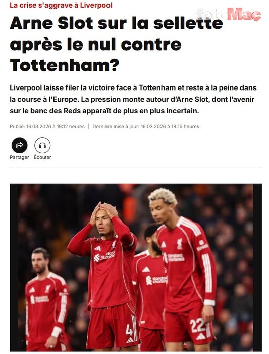 Blick kaynaklı haberde, Liverpool’un Şampiyonlar Ligi’nde Galatasaray’a elenmesi durumunda Arne Slot’un görevine son verilebilir.