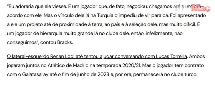 Atletico Mineiro forması giyen sol bek Renan Lodi de Lucas Torreira ile konuşarak transferde yardımcı olmaya çalıştı. İkili, 2020/21 sezonunda Atletico Madrid’de birlikte forma giymişti.