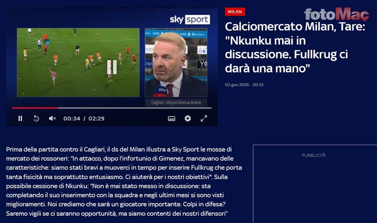 Milan Sportif Direktörü Igli Tare, Serie A’da oynanan Cagliari maçı öncesi Christopher Nkunku ile ilgili çıkan transfer iddialarına ilişkin açıklamalarda bulundu.